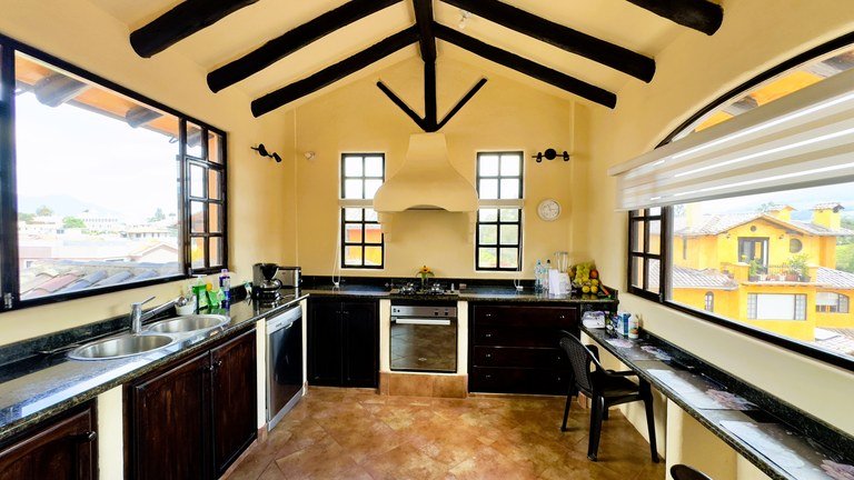 The gourmet kitchen is a work of art, featuring sleek granite countertops and a perfectly placed window that offers a postcard view of Mount Cotacachi as you cook. The architect’s brilliance is evident in the layout, which masterfully captures stunning views of both the Cotacachi and Imbabura volcanoes from nearly every angle.